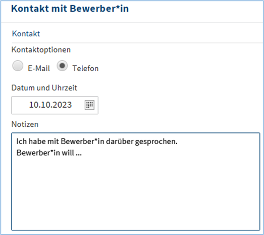 Kontakt mit Bewerber*in – Kontakt und Notizen