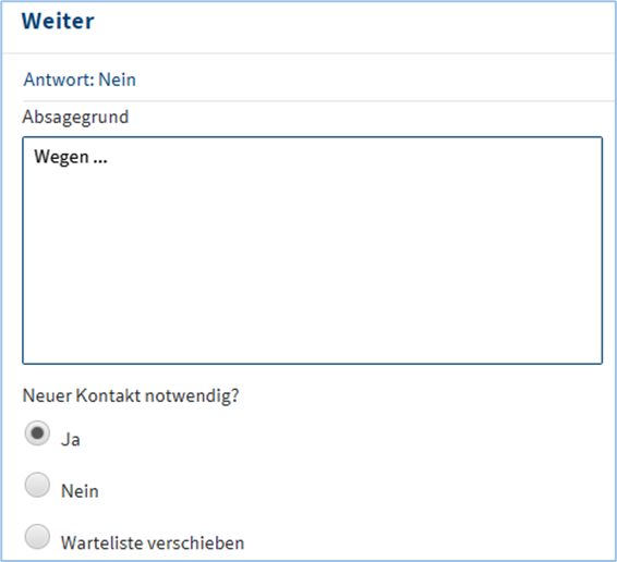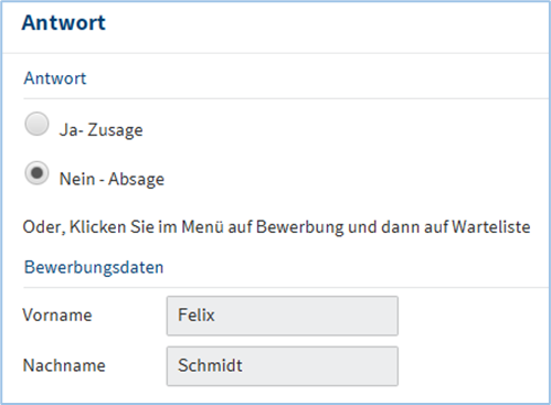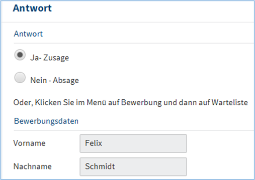 Antwort von der Bewerber*in: ja – nein – oder Warteliste