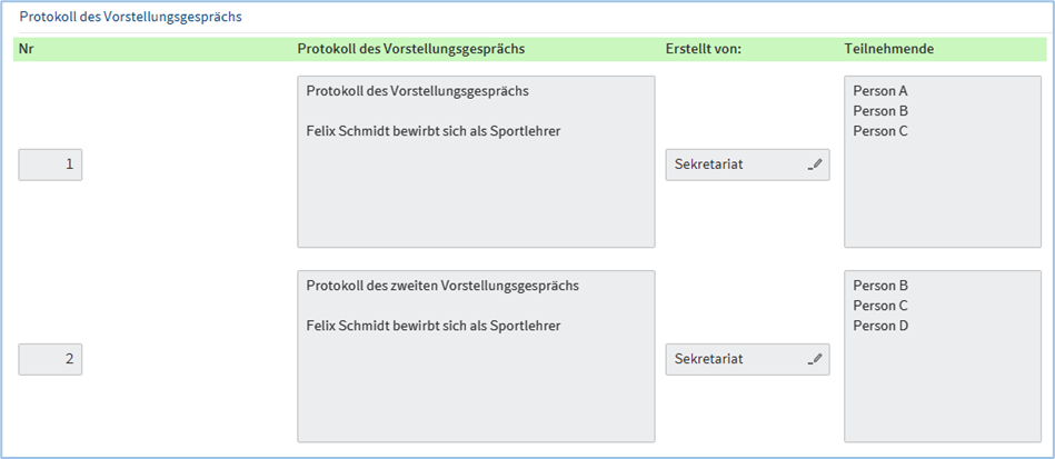 - Protokolle der Vorstellungsgespräche
