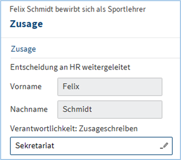 Kontakt mit Bewerber*in – Verantwortlichkeit: Kontakt