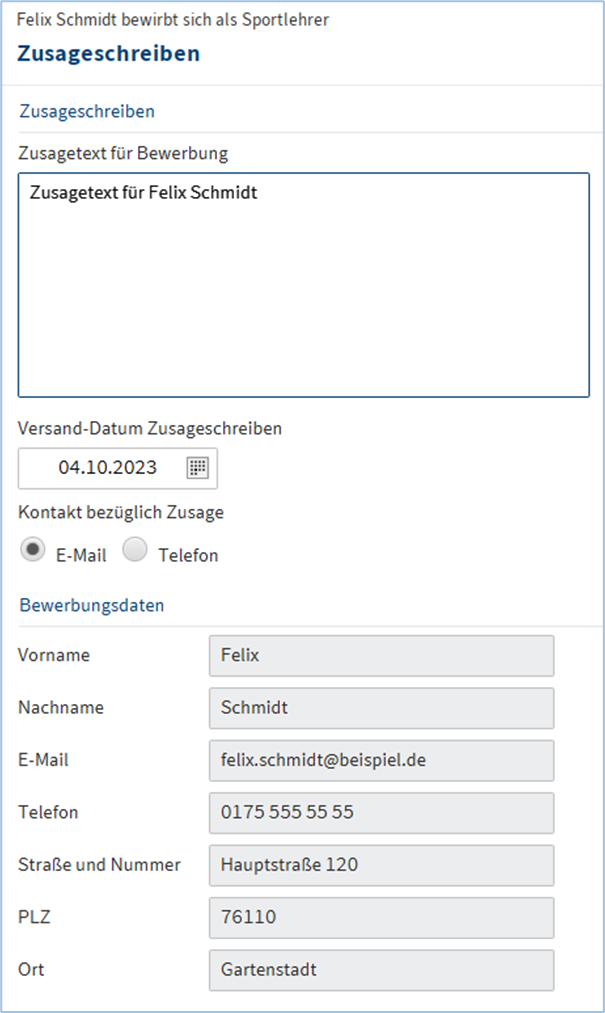 -Zusageschreiben oder Absageschreiben