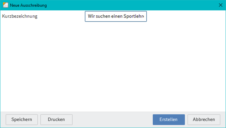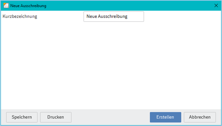 Als erstes erstellen wir einen neuen Ordner für die Ausschreibung. Im Menü Ausschreibung klicken wir auf die Schaltfläche Neue Ausschreibung und geben dann einen Ordner Name ein (z.B. Ausschreibung - Mathematik und Physik Oberstufe).