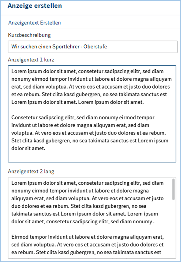 Beispiel: Wir suchen einen Sportlehrer - Oberstufe