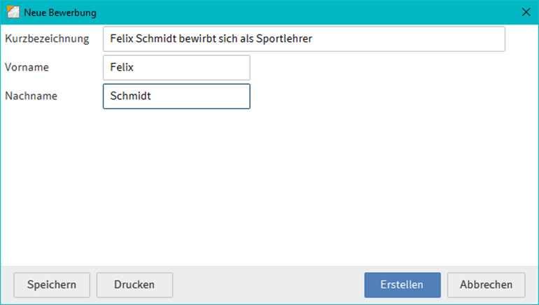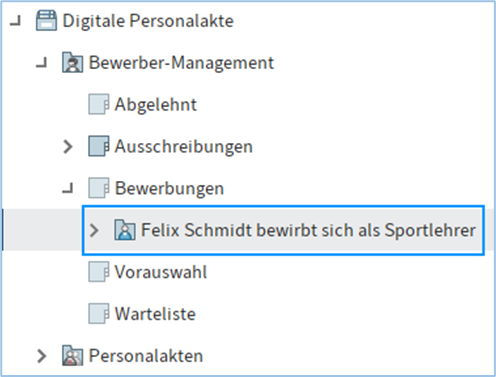 (In der Digitale Personalakte --> Bewerber-Management --> Bewerbungen --> Felix Schmidt bewirbt sich als Sportlehrer