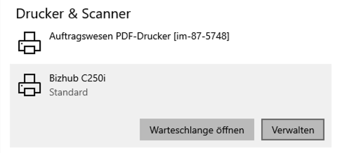 1. Öffnen Sie Drucker & Scanner und wählen Sie den soeben angelegten Drucker Bizhub C250i aus.