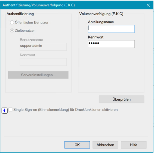 4. Geben Sie unter Volumenverfolgung (E.K.C) im Bereich Kennwort die Benutzernummer der jeweiligen Firma ein und Klicken auf OK