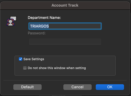 - Now type in the Department Name for us its: TRIARGOS and click OK.