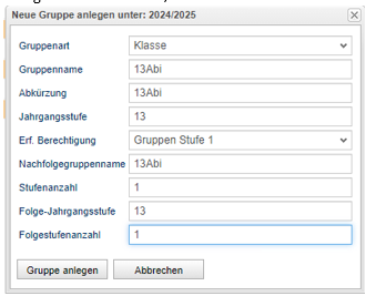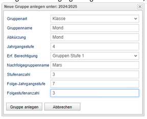 2. In die Nachfolgegruppe kommt der Name einer Klasse, die die nächsthöheren Jahrgänge sammelt.