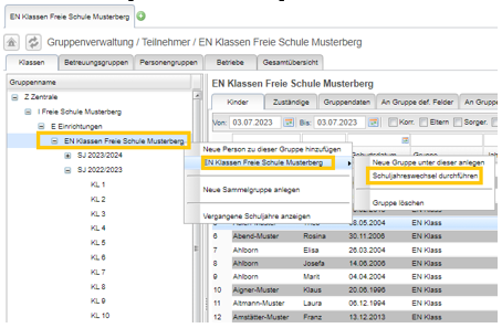 · Lassen Sie alle kommenden Erstklässler*innen, wenn noch nicht geschehen, von der Warteliste in die 1. Klasse des neuen Schuljahres wechseln (siehe Kapitel 3.2.1, Abschnitt „in Gruppe wechseln“).